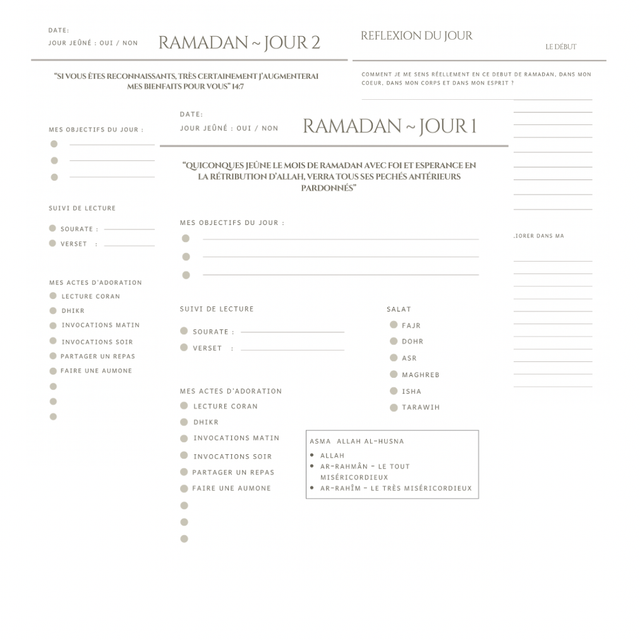 Si tu as parfois l’impression de ne pas vivre pleinement ton Ramadan, absorbée par le quotidien, ce planner est fait pour toi.